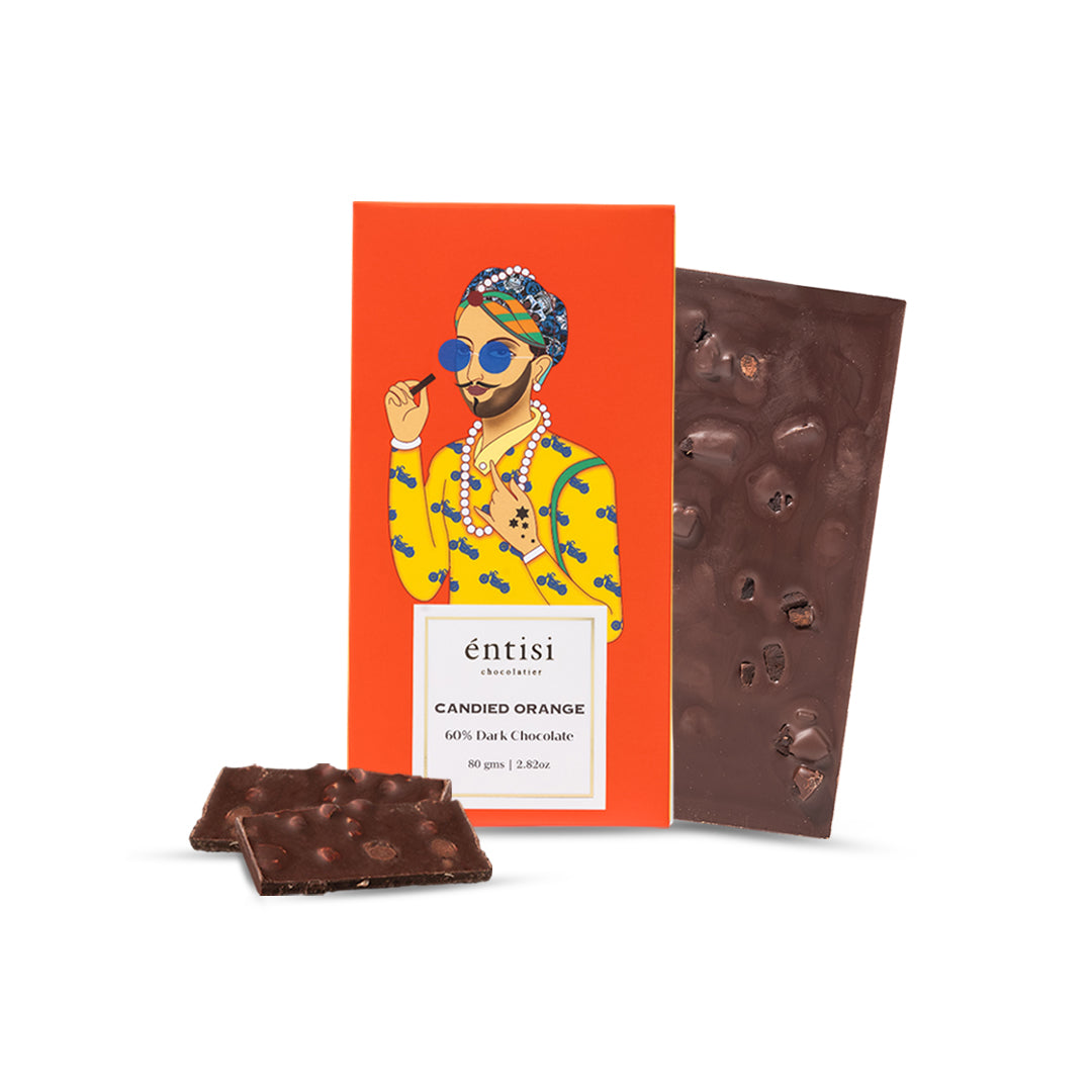 60% Dark chocolate bar with real candied orange peels
